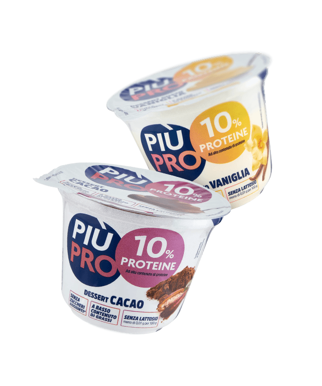 Una crema morbida e avvolgente può essere gustata senza commettere nessun peccato di gola? Sì, se si tratta dei dessert Più Pro. Disponibili in gusti classici e al contempo golosi come crema e cioccolato, questi prodotti si caratterizzano per essere innovativi nella loro formulazione rispetto ai normali dessert: sono infatti arricchiti di proteine, non contengono zuccheri aggiunti né lattosio e vantano un ridotto contenuto di grassi.